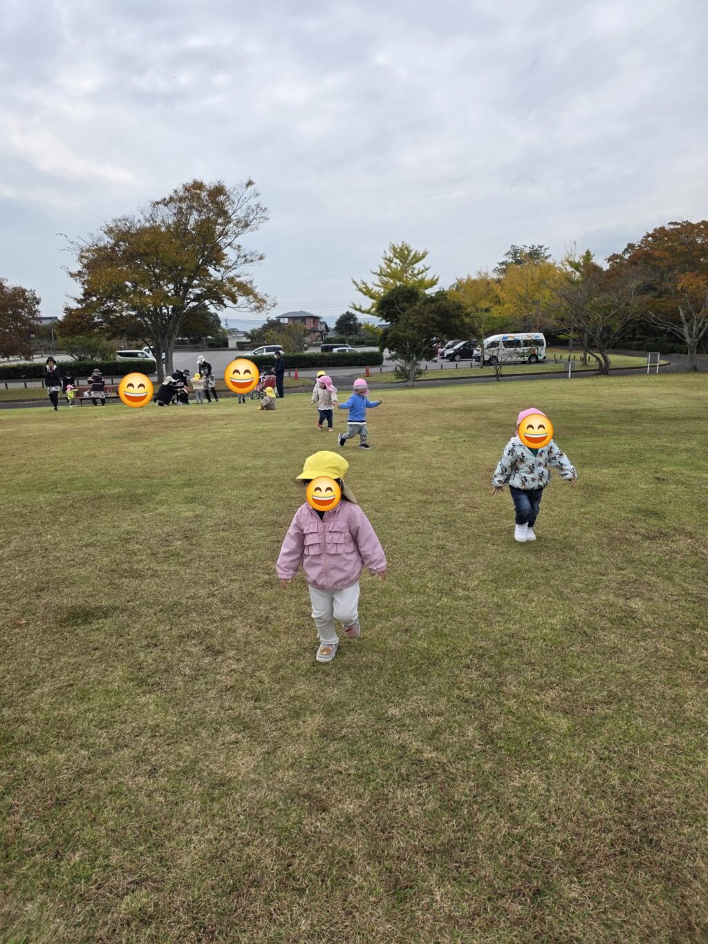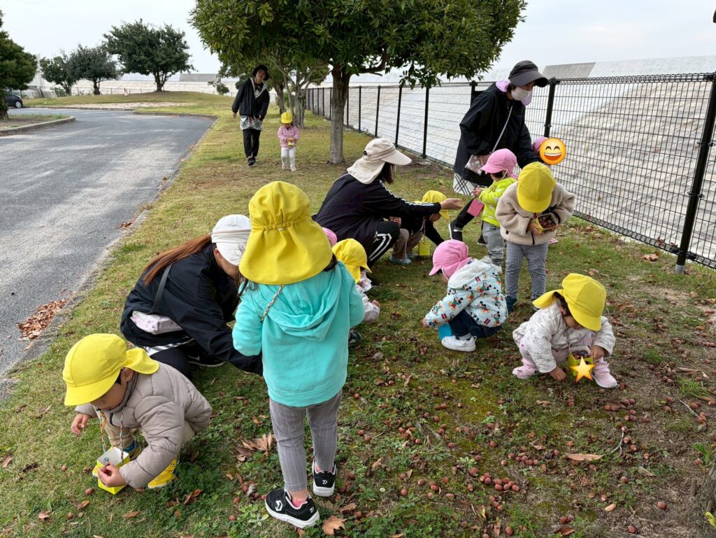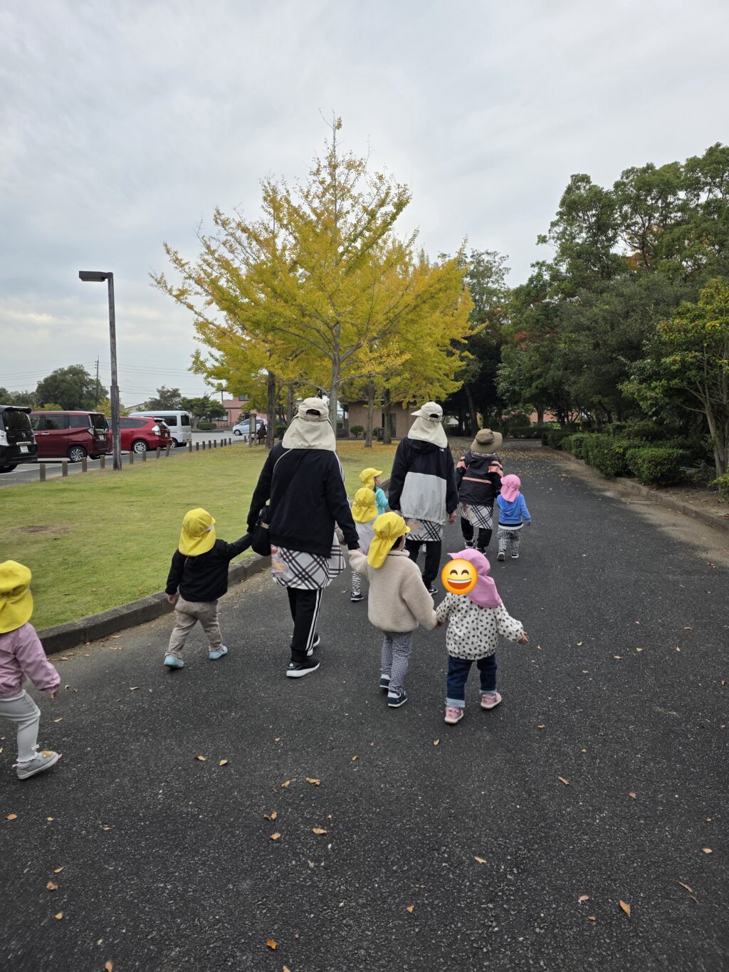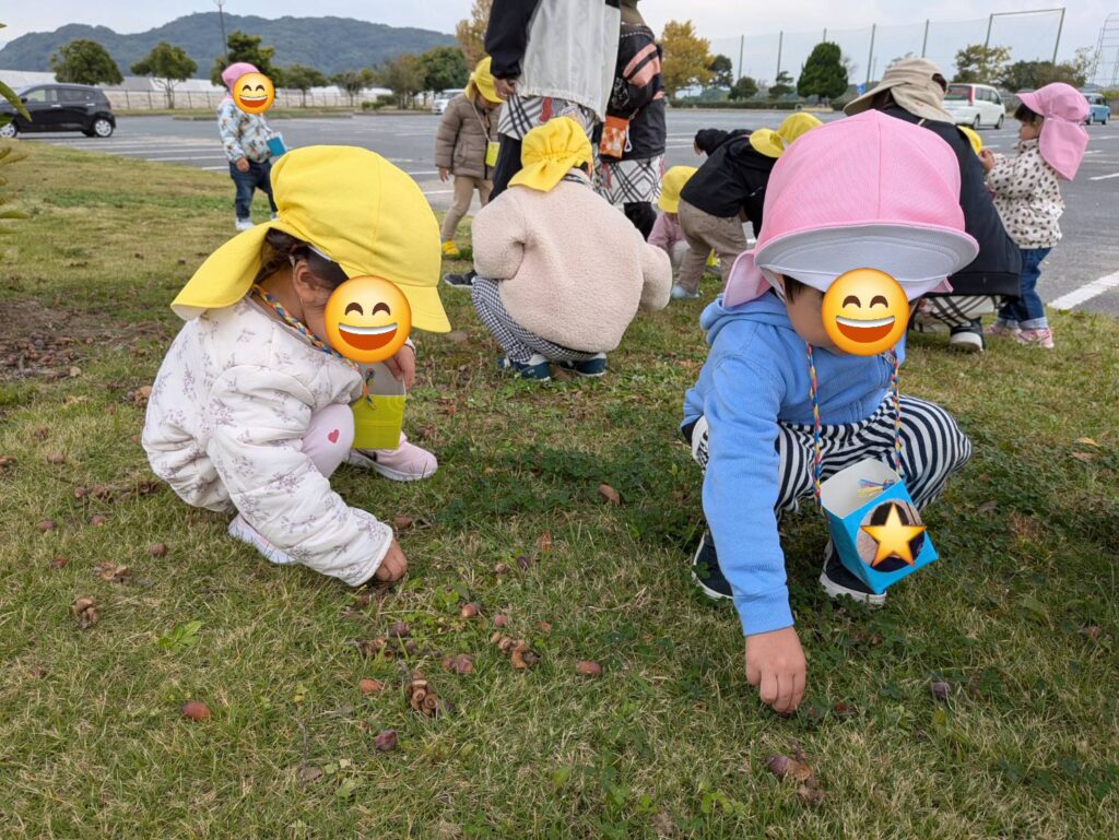 寒さが心配されましたが、今日どんぐり遠足に行ってきました。到着後はすぐにおやつを食べて大きなアスレチックでたくさん身体を動かして遊んだので、体はぽっかぽか。その後、お散歩を楽しみながら、沢山どんぐりを拾う事ができました。