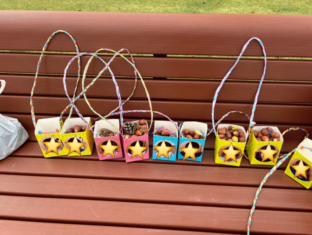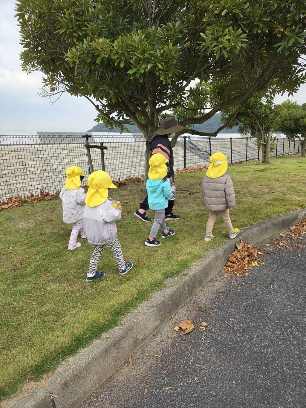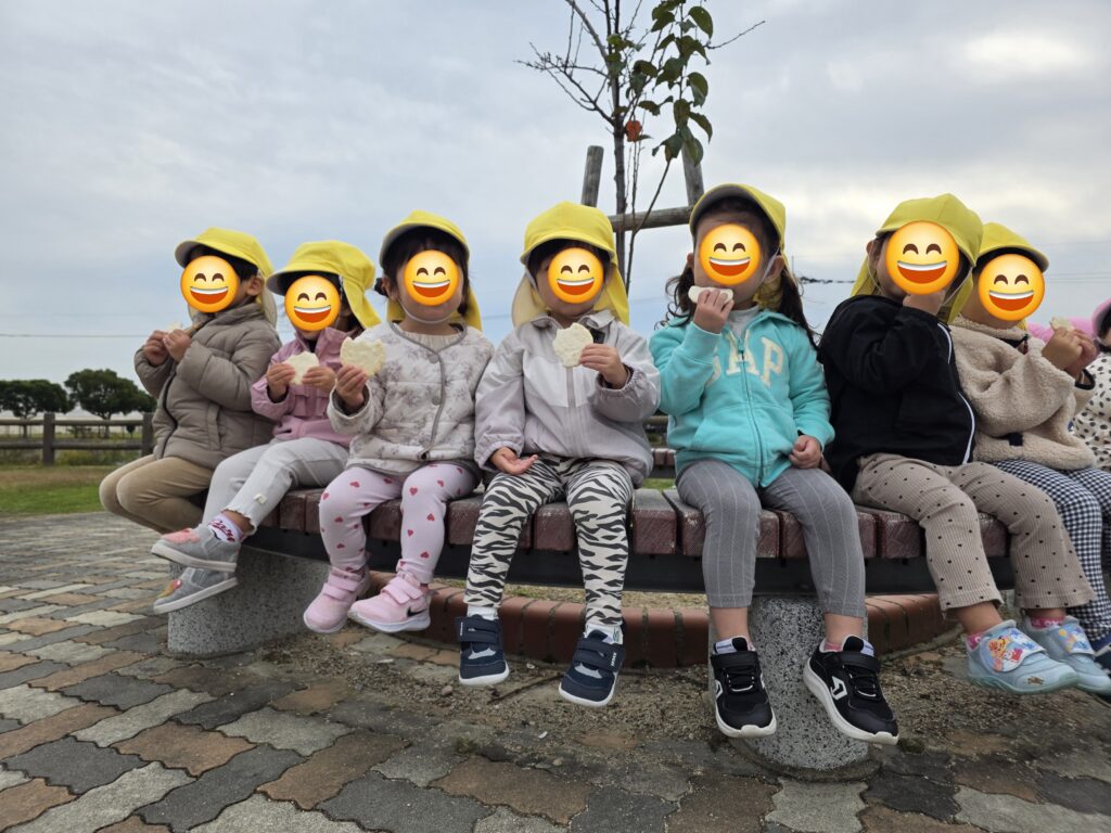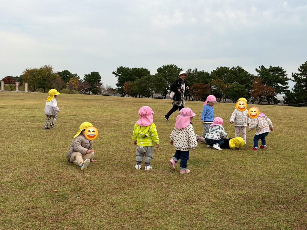 寒さが心配されましたが、今日どんぐり遠足に行ってきました。到着後はすぐにおやつを食べて大きなアスレチックでたくさん身体を動かして遊んだので、体はぽっかぽか。その後、お散歩を楽しみながら、沢山どんぐりを拾う事ができました。