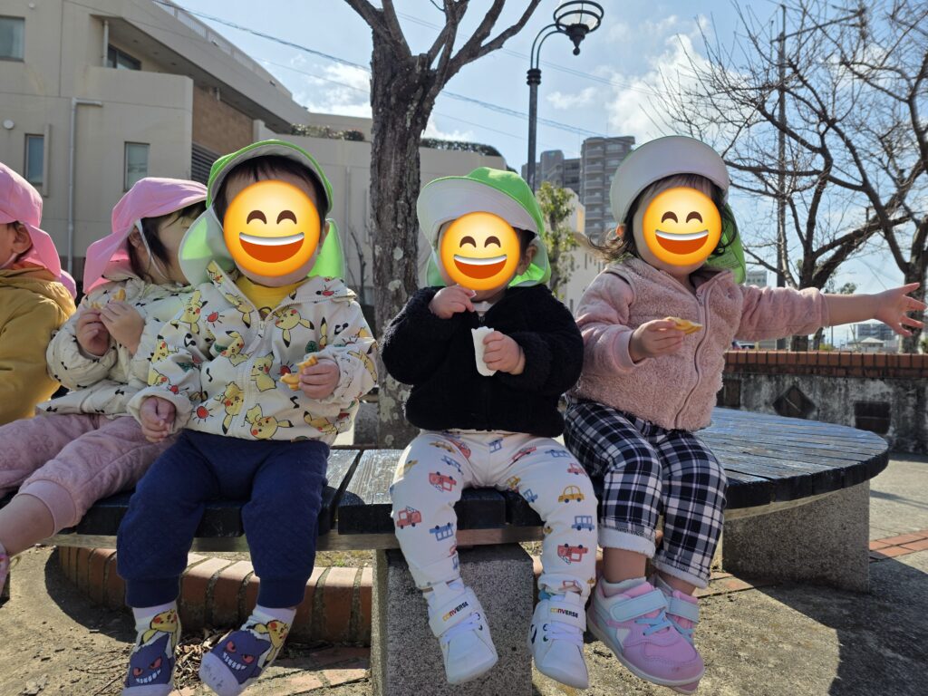 お弁当とおやつを持って、公園に出発♪たくさん遊んで、たくさん食べてきました。